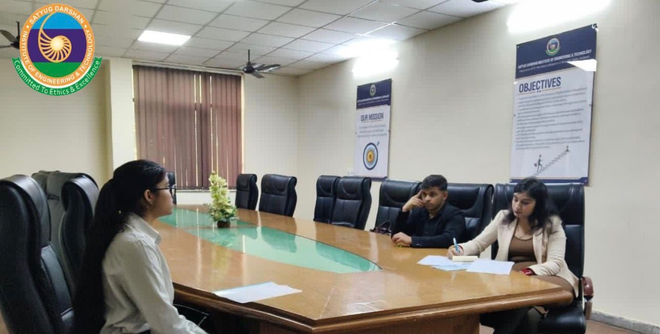 सत्युग दर्शन इंस्टीट्यूट ऑफ इंजीनियरिंग एंड टेक्नोलॉजी (SDIET) में रियल्टी स्मार्ट्ज प्रा. लि., गुरुग्राम द्वारा पोर्टफोलियो मैनेजर – रियल एस्टेट पद हेतु सफल कैंपस प्लेसमेंट ड्राइव का आयोजन किया गया। इस अवसर पर संस्थान के बी बी ए, फाइनल ईयर के विद्यार्थियों ने उत्साहपूर्वक भाग लेते हुए रियल एस्टेट क्षेत्र में अपने करियर की दिशा में महत्वपूर्ण कदम बढ़ाया।